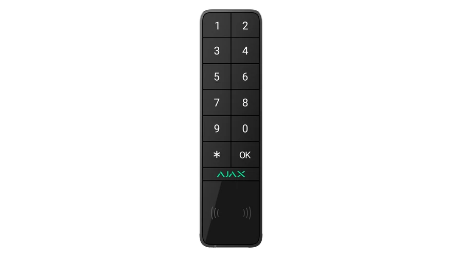 A billentyűzet az Ajax rendszer részeként működik, és a központi egységgel (Hub) a biztonságos Jeweller rádiós kommunikációs protokollon keresztül cserél adatokat.