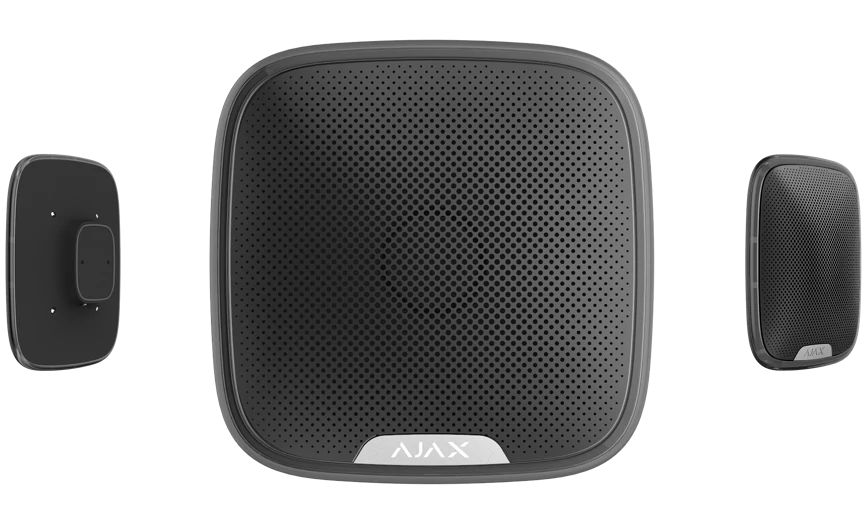 Az AJAX StreetSiren BL egy vezeték nélküli kültéri hang- és fényjelző, mely kiválóan alkalmas otthonok és üzletek külső területeinek biztonságosabbá tételére. A fekete színű kialakítás modern megjelenést kölcsönöz az eszköznek, mely hatékonyan figyelmezteti a környezetet a veszélyhelyzetekre.